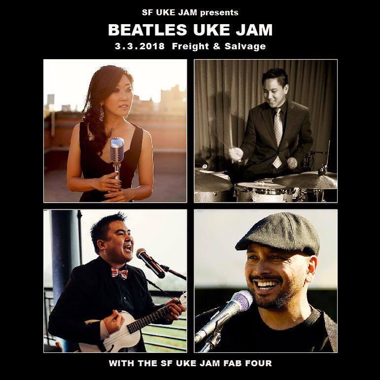 Come on out for the Beatles Uke Jam with the Fab Four Uke All Stars: Cynthia Lin, Ukulenny, Abe Lagrimas Jr. on drums, and Steven Espaniola on bass! Our jams have grown so much, and we are thrilled to bring this year's Beatles Jam to Freight & Salvage in Berkeley, a 400-seat concert venue we filled up at the Holiday Jam. Bring your ukulele and all your uke friends for a full two hours of singing and strumming to Beatles classics.